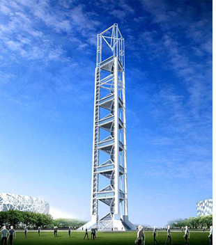 “玲珑塔”正在建设中,它体现了北京奥组委对转播商意见的重视,预计下个月有望‘浮出’地面。持权转播商将在塔内的演播室中工作,壮观的奥林匹克公园和主要场馆可作为拍摄的背景,观众将感受到强烈的视觉冲击。奥林匹克多功能演播塔工程,位于奥林匹克公园中心区中部,鸟巢北侧,西临中轴景观大道,占地面积1100平方米,总建筑面积4500平方米,总高度128米,为奥林匹克公园中心区的最高建筑。演播塔的工程设计造型吸取了中国传统建筑文化中塔的元素,主体采用钢结构,外饰玻璃幕墙。演播塔结构平面形式为等边三角形,共分7层塔楼,首层塔楼为建筑面积1000平方米的休息大厅或大演播厅,2至6层塔楼为演播室,顶层塔楼暂定为VIP观光厅。建成后的演播塔外立面装修主要材料为彩釉玻璃幕墙,钢结构外露表面白色氟碳喷涂或白色瓷漆,利用金属的色泽及玻璃的晶莹,营造出一种强烈的视觉冲击力。